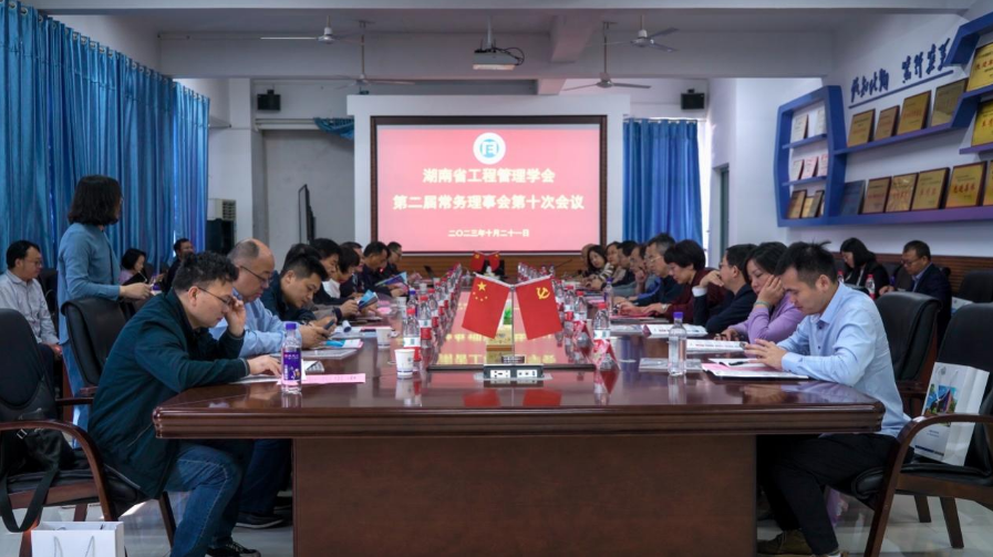 本网讯(通讯员 赵曼莉)2023年10月21日上午,湖南省工程管理学会第二届常务理事会第十次会议在我校建规楼402会议室召开,36位常务理事参加会议,我校管理学院部分代表列席会议。会议由常务副理事长、中南大学土木工程学院郭峰教授主持。