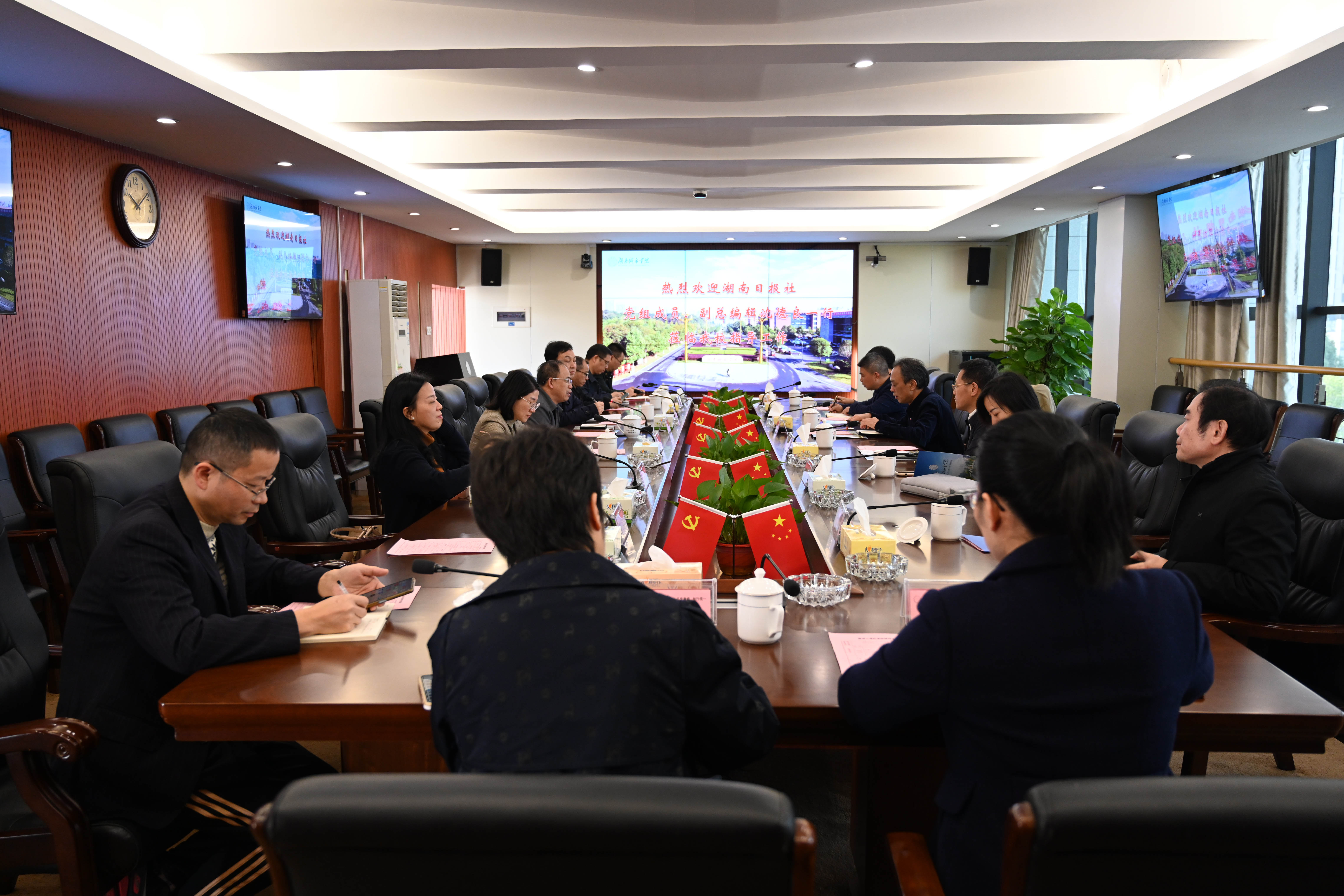湖南日报社编委王礼生,湘评频道、智库办公室、理论新论版、湖南日报益阳分社的相关负责人,我校宣传部、学科建设与发展规划处/研究生处、科研处、马克思主义学院等单位负责人及教师代表参加座谈会,并进行了对口交流。