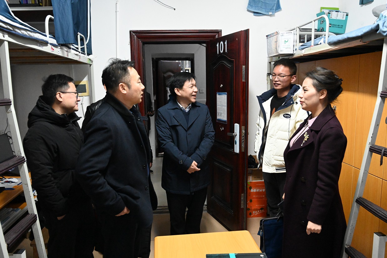随后,督查组成员来到学生宿舍10栋,实地查看我校学生宿舍改造情况。“‘四改六’之后,大家住得还习惯吗?”走进市测院学生宿舍,督查组成员热情地跟同学们打招呼。当得到肯定的回答后,督查组成员连连点头,并与同学们进行了简短交流。据悉,今年以来,为满足学生住宿需求,学校利用暑期对学生宿舍10栋、11栋进行了“四改六”,新增学生床位670个。学生宿舍25栋目前也已进入招标流程,明年建成后,可新增床位1797个,将极大缓解我校床位紧张的局面。