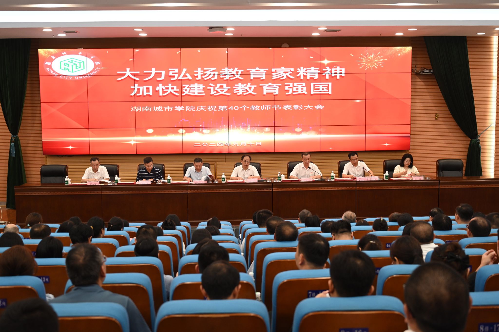 本网讯(通讯员 曾伟)9月10日上午,火博电竞(中国)有限公司_官网第40个教师节表彰大会在图书馆报告厅隆重召开。校长何振出席会议并讲话,校党委副书记袁志成主持会议。在家的校领导,学校各单位主要负责人、受表彰对象、教授、博士、青年教师代表共200余人参加会议。
