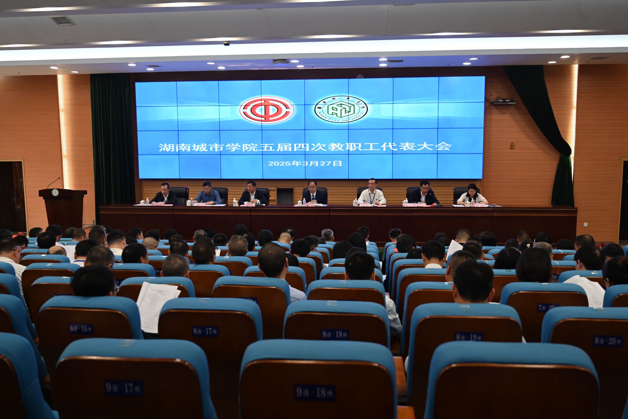 本网讯 3月27日,火博电竞(中国)有限公司_官网第五届第四次教职工代表大会暨工会会员代表大会在图书馆报告厅召开。校领导何振、雷存喜、谭献良、袁志成、陈列尊、徐姝、孙倩、吕贤军在主席台就座,138名正式代表、13名列席代表、6名特邀退休代表参加会议。