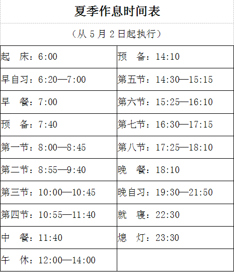 4月29日至5月1日(星期日、星期一和星期二)放假调休,共3天,4月28日上4月30日(星期一)的课,5月2日起执行夏季作息时间。