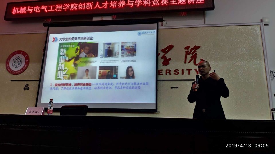 为促进创新创业教育融入专业教育人才培养全过程,营造浓厚的校园科创学术氛围,让学生深入了解并积极参加学科竞赛及创新创业相关活动。413日,武汉轻工大学教授、国家机械创新设计大赛首席专家孙亮波教授莅临学院为全院师生作“创新创业人才培养与学科竞赛”专题讲座,机械与电气工程学院院长阳同光教授等院领导及百余名师生听取了讲座。