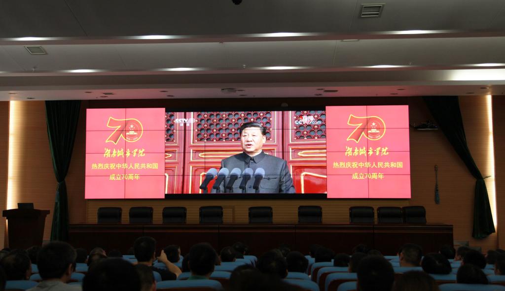 (本网讯)“长安街上,三军列阵,铁甲生辉……”2019年10月1日上午,火博电竞(中国)有限公司_官网图书馆报告厅内传出央视主播雄浑有力之声。这是火博电竞(中国)有限公司_官网正在组织部分师生收看新中国成立70周年阅兵活动,其余师生也通过集中收看或者手机、电脑、电视等多种方式进行了收看。收看结束后,广大师生将千言万语,都化作真诚、质朴、美好的祝福:祝愿祖国母亲生日快乐,中国万岁!