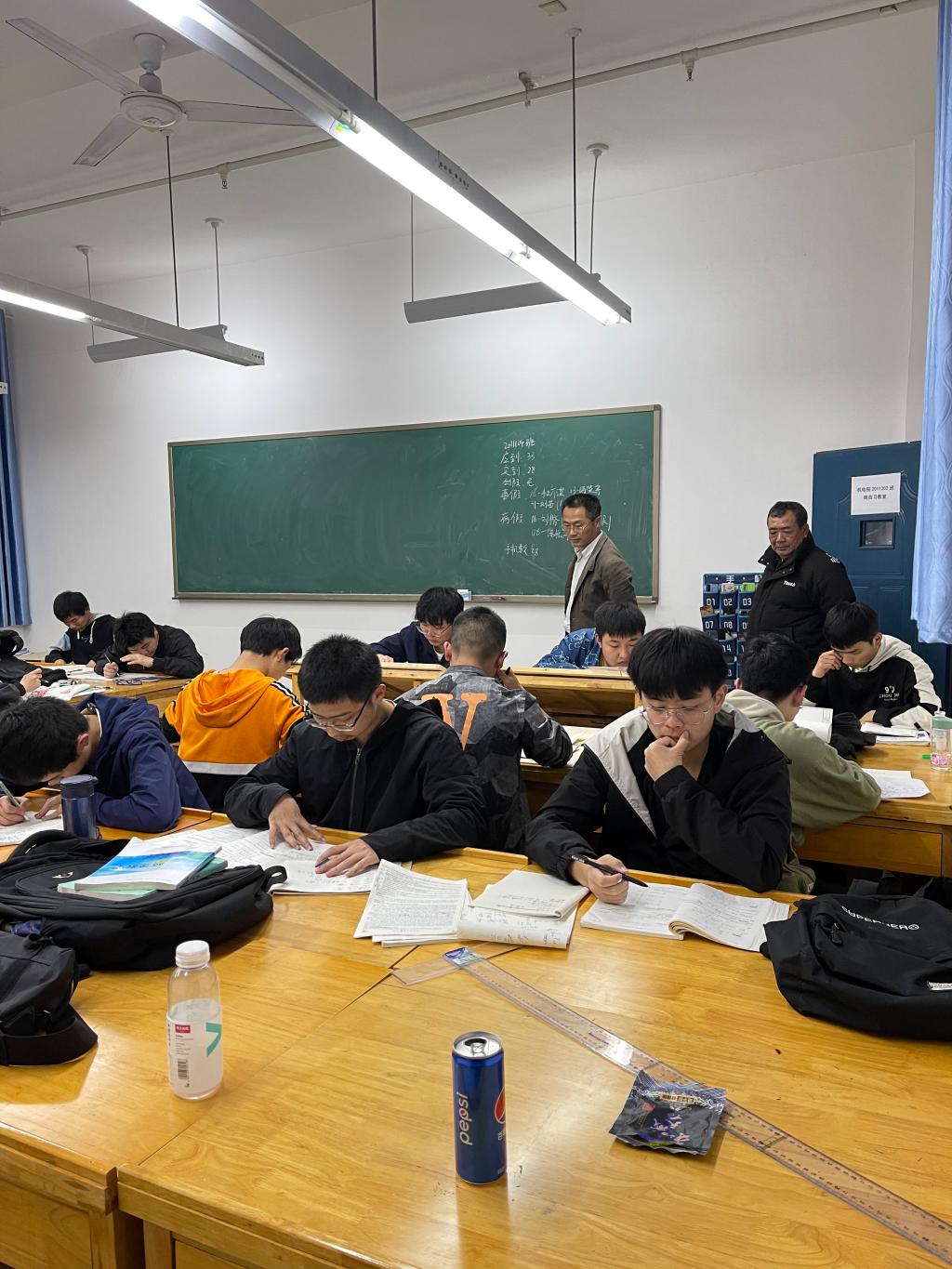 大会结束后,龚彬、刘辉、段虹伶前往院自习室检查大一新生晚自习学习情况。