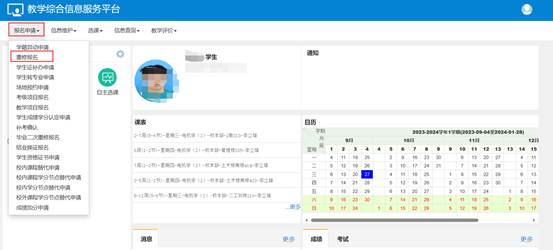 登录系统点击【报名申请】--【重修报名】