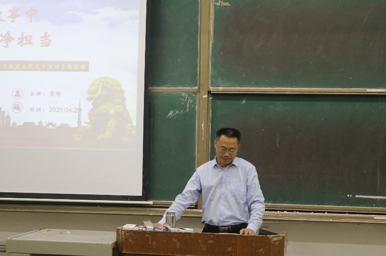 2021年4月28日晚7点,我院一教108开展了面向全体学生党员学生干部的党史学习教育专题讲座。主讲人机械与电气工程学院党总支副书记副教授龚彬。党务办宣传部副部长王正驰主持本次活动。